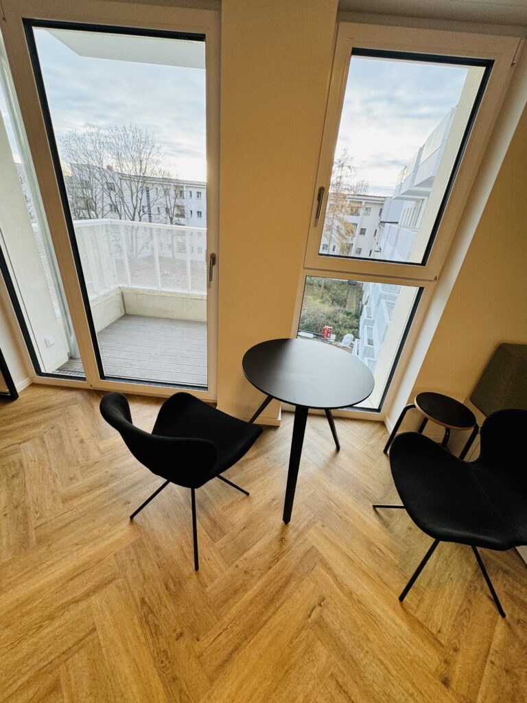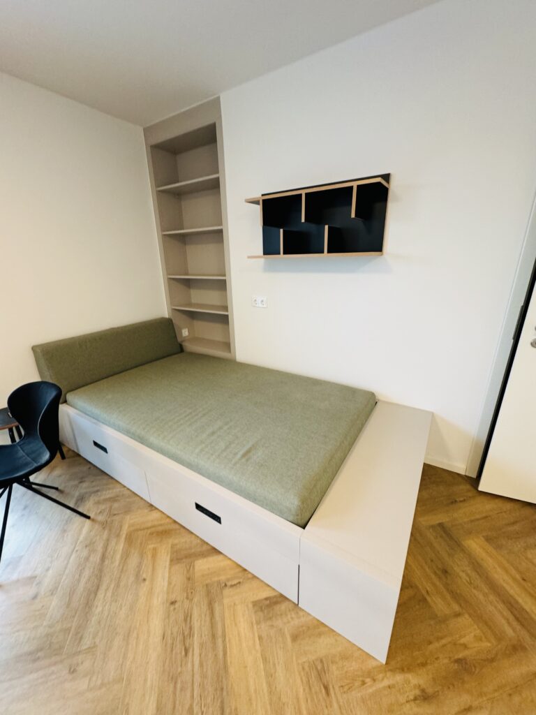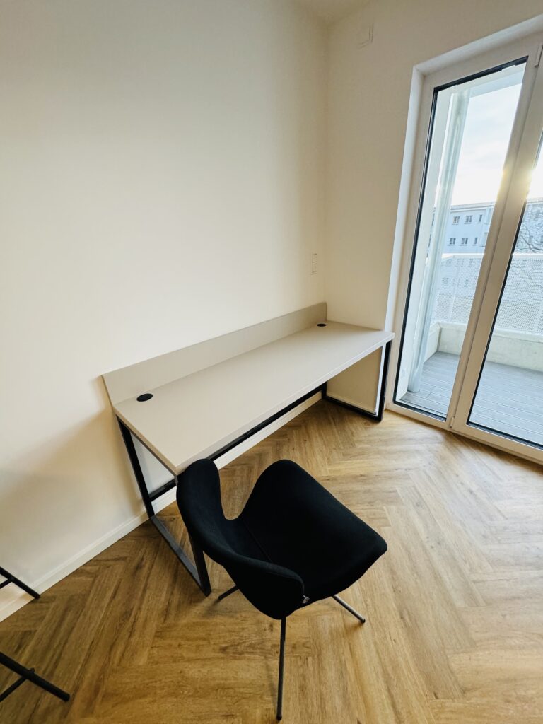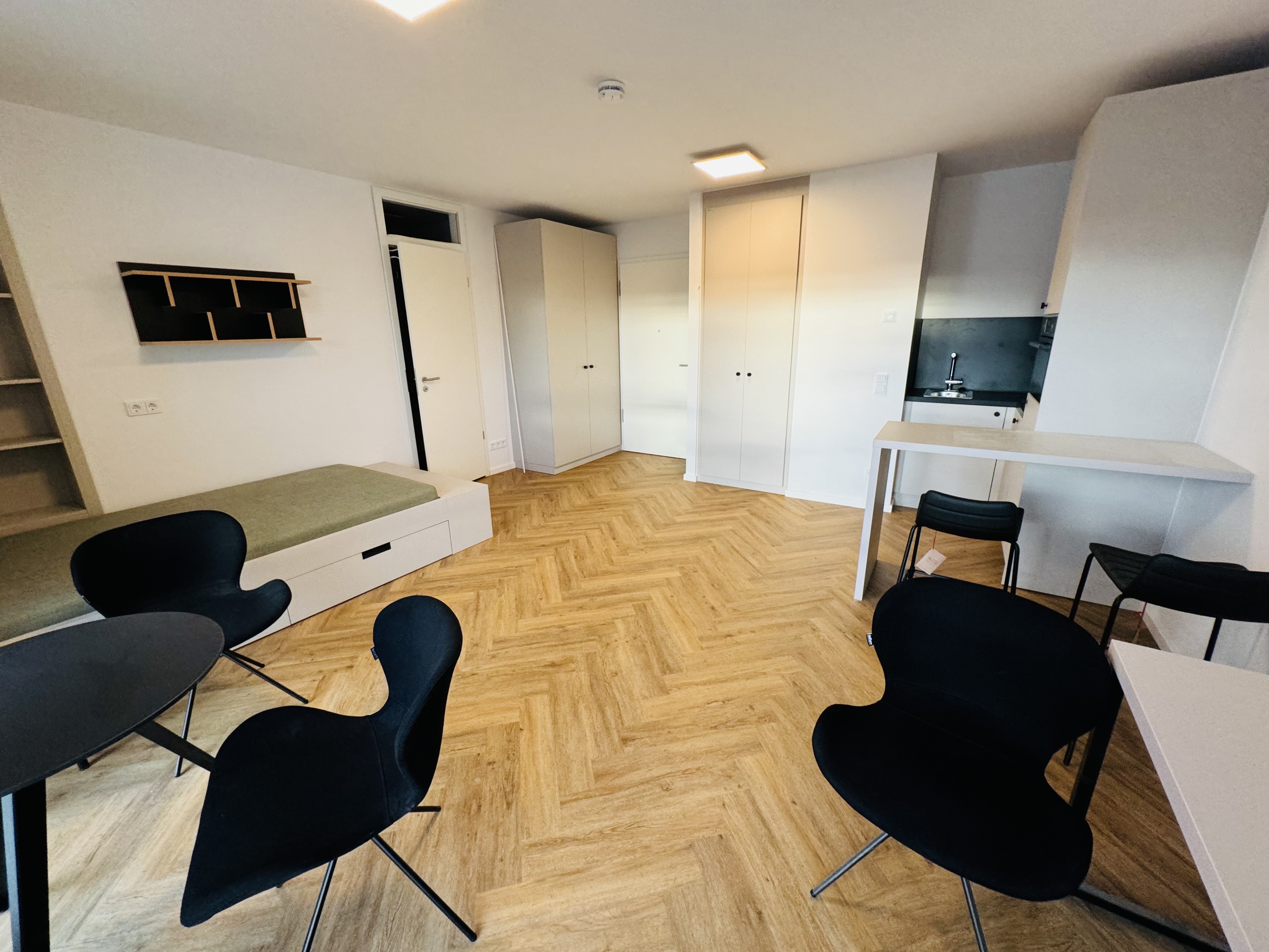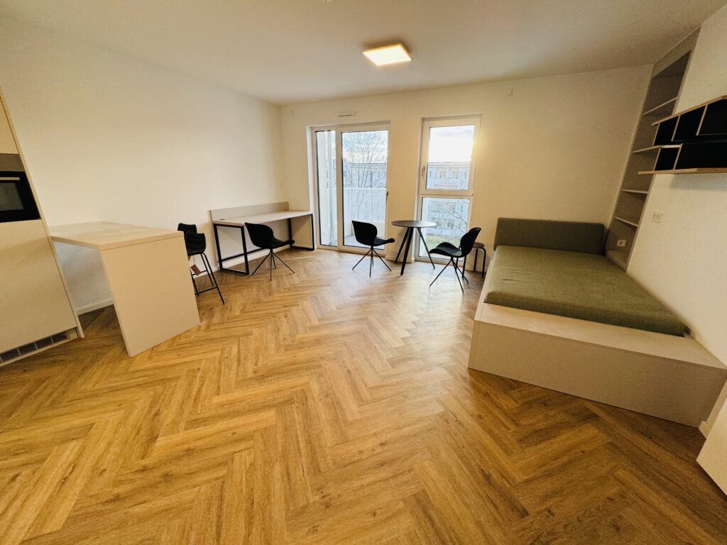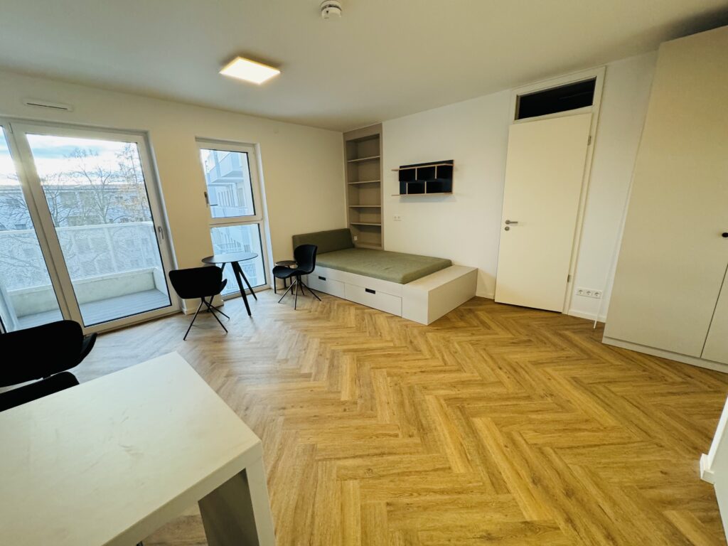 Auf den insgesamt fünf Etagen befinden sich insgesamt 129 Wohnungen, möblierte 1 Zimmerapartments sowie unmöblierte 2-Zimmer und 3-Zimmerwohnungen.