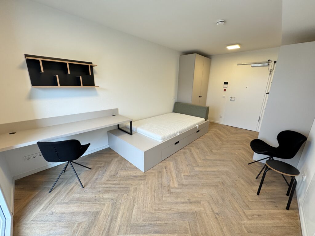 Ob vollmöblierte 1-Zimmer-Apartments für Singles und Pendler oder hochwertig ausgestattete 2-Zimmerwohnungen mit moderner Einbauküche – hier findet jeder ein passendes Zuhause. Großzügige Balkone, bodentiefe Fenster und eine durchdachte Raumaufteilung bieten ein urbanes Wohlfühlambiente.